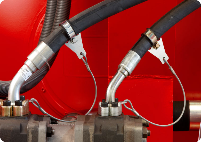 I componenti Stopflex possono essere applicati a tutti i tipi di tubo flessibile. La fascetta, munita di guarnizione, rimane perfettamente ancorata al tubo pur consentendo alla condotta di polmonare in base alla pressione di esercizio. L’ancoraggio può essere applicato a nippli, a flange SAE o a diversi componenti dell’impianto.